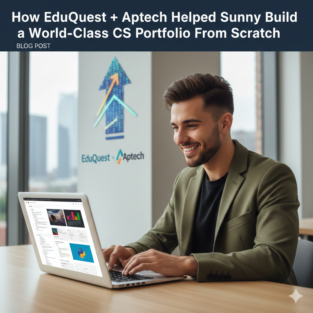 EduQuest helped him structure his portfolio, while Aptech helped him build and deploy projects.